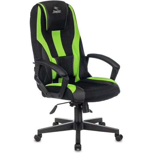 Кресло компьютерное игровое ZOMBIE Кресло игровое 9, на колесиках, ткань/экокожа, черный/салатовый [ 9 green]