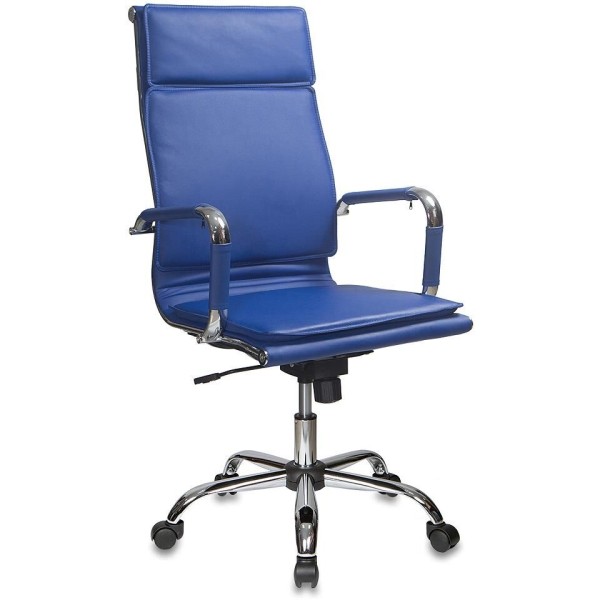 Кресло компьютерное БЮРОКРАТ Кресло руководителя CH-993 синий эко.кожа крестов. металл хром