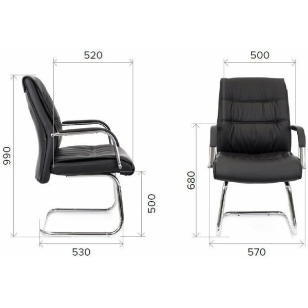 Подлокотники: Металлические с накладками из экокожи. Подголовник: Нет. Поясничная поддержка: Да. Каркас: Немонолитный. Материал обивки: Экокожа. Материал набивки: Вспененный полиуретан плотностью 22-25 кг/куб.м. Тип кресла: Для посетителей. Цвет: Черный. Допустимая нагрузка: 120 кг.