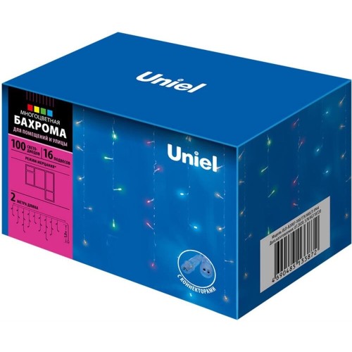Гирлянда UNIEL (UL-00007208) ULD-B2007-100/TTK MULTI IP44 Бахрома светодиодная с эффектом мерцания, 2м. Соединяемая. 100 светодиодов. Разноцветный свет. Провод