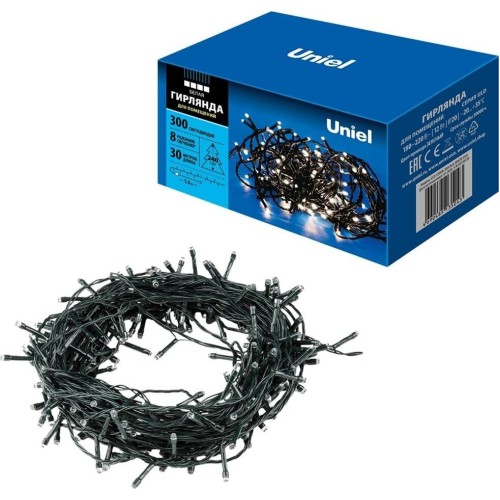 Гирлянда UNIEL (UL-00007309) ULD-S2000-200/DGA WHITE IP20 Гирлянда светодиодная, 20м. 200 светодиодов. Белый свет. Провод зеленый. ТМ Uniel