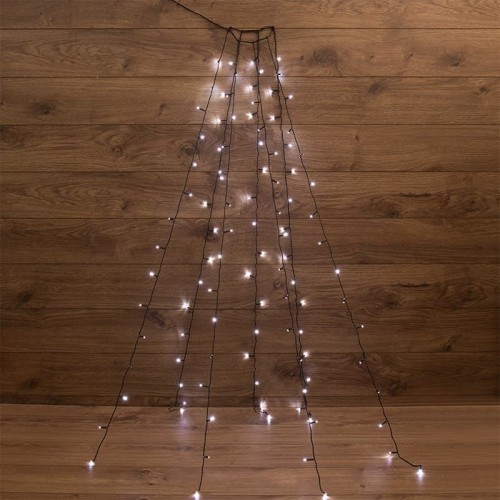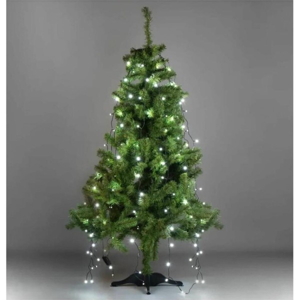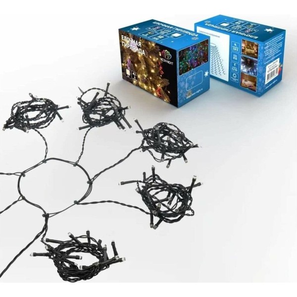 "Елочная гирлянда представляет собой конструкцию, в основании которой расположено кольцо, на котором через определенные промежутки крепятся 7 нитей по 1,5 метра. Данная гирлянда предназначена для домашнего использования и идеально подойдет для украшения елок. Просто повесьте кольцо на вершину елки, расправьте нити и готово! Данная гирлянда имеет длину 1,5 м, цвет свечения светодиодов белый."