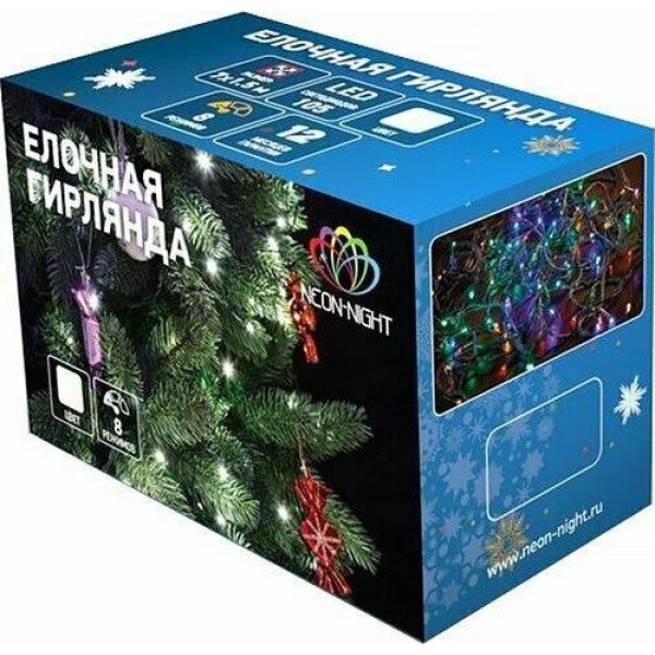 Гирлянда NEON-NIGHT (235-075) ЕЛОЧНАЯ ГИРЛЯНДА С КОЛЬЦОМ, 7 НИТЕЙ ПО 1,5 М, ДИОДОВ БЕЛЫЙ, НЕ СОЕДИНЯЕТСЯ