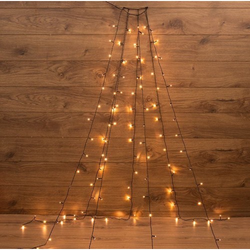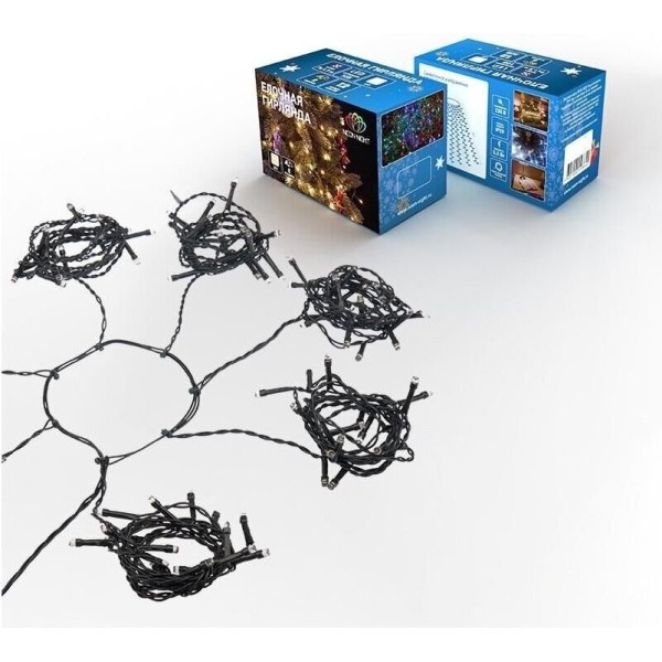 Елочная гирлянда представляет собой конструкцию, в основании которой расположено кольцо, на котором через определенные промежутки крепятся 7 нитей по 1,5 метра. Данная гирлянда предназначена для домашнего использования и идеально подойдет для украшения елок. Просто повесьте кольцо на вершину елки, расправьте нити и готово! Данная гирлянда имеет длину 1,5 м, цвет свечения светодиодов теплый белый.