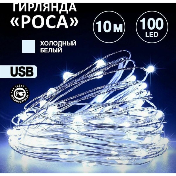 Гирлянда NEON-NIGHT (315-975) ГИРЛЯНДА РОСА 10 М, 100 LED, USB, БЕЛОЕ