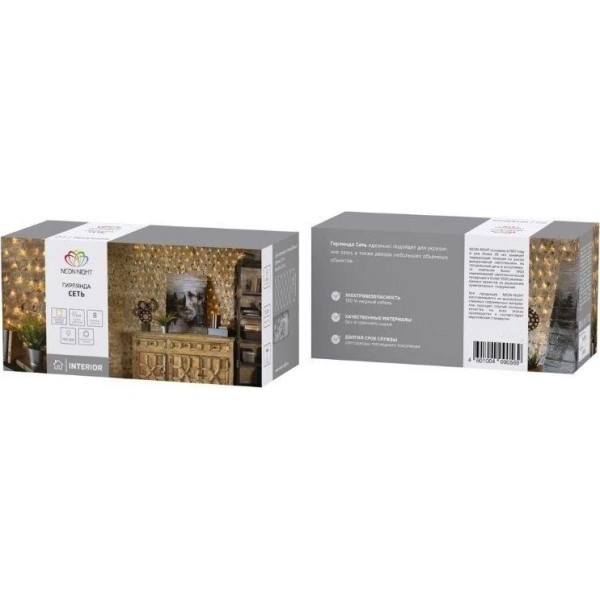 Гирлянда NEON-NIGHT (215-126) ГИРЛЯНДА "СЕТЬ" 1,5Х1,5М, ПР-Й ПВХ, 150 LED ТЕПЛЫЙ БЕЛЫЙ