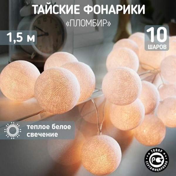 Гирлянда NEON-NIGHT (303-077) ТАЙСКИЕ ФОНАРИКИ ПЛОМБИР 1.5 М, 10 LED, ПР-Й ПВХ, ТЕПЛЫЙ БЕЛЫЙ,