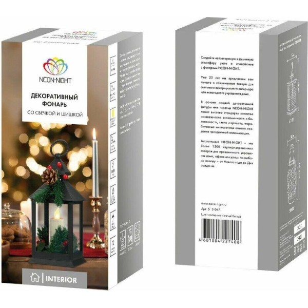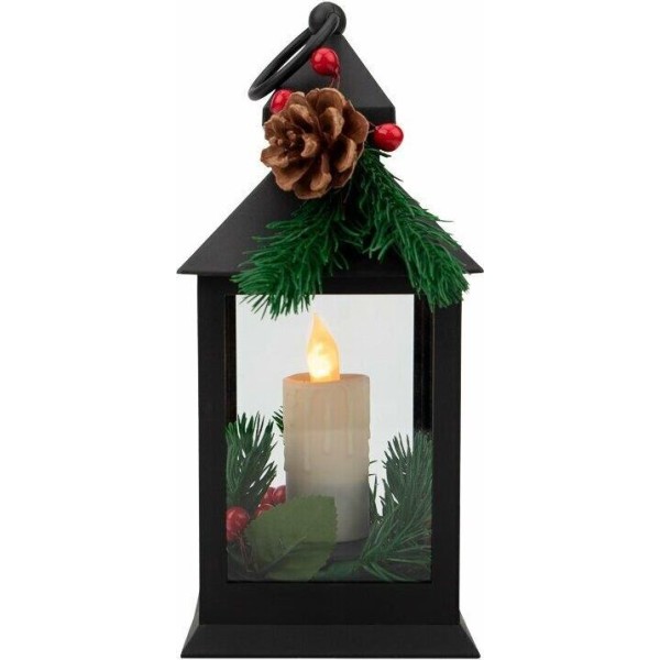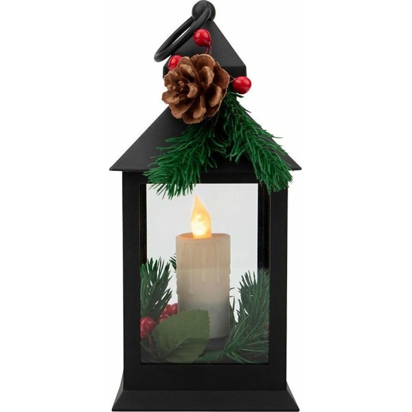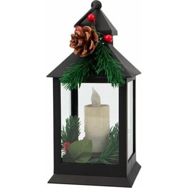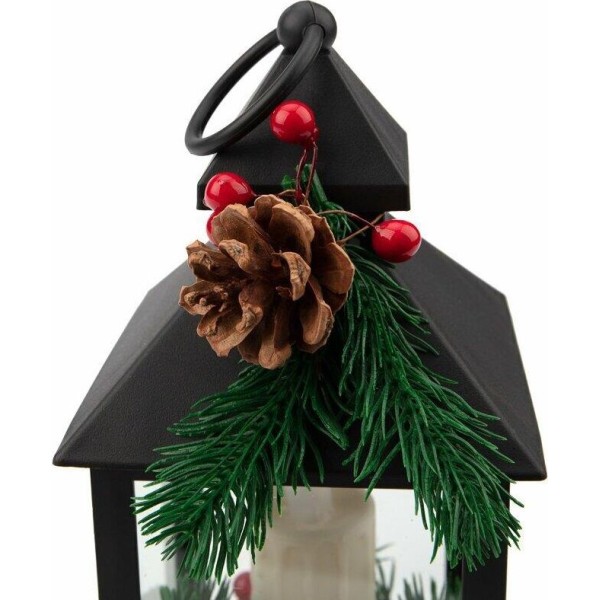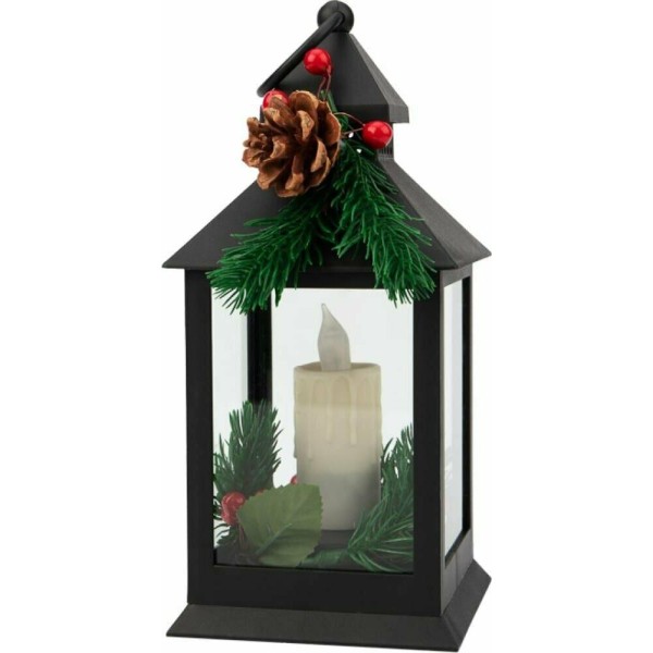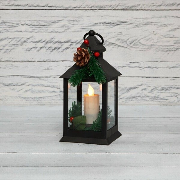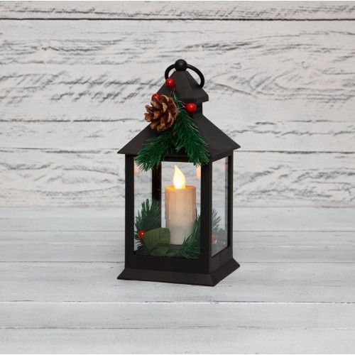 NEON-NIGHT (513-047) Декоративный фонарь со свечкой и шишкой, черный , 10,7x10,7x23,5 см, цвет Теплый