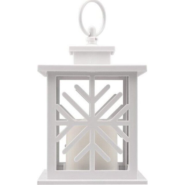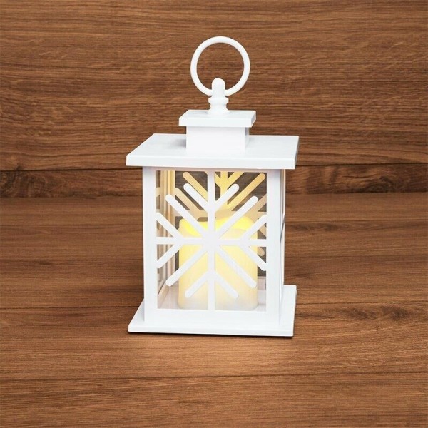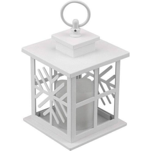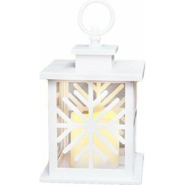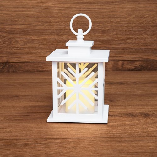 Декоративный фонарь со свечкой выполнен в виде аутентичного светильника, на белом корпусе размещена резная снежинка, а внутри, за стеклом находится пластиковая свеча, которая сияет теплым белым светом, отбрасывая мягкие тени и создавая атмосферу уюта. Экономичный безопасный светодиод получает питание от 3 батареек типа ААА и управляется выключателем на корпусе. Декоративный фонарь гармонично украсит интерьер любого стилевого направления и станет приятным подарком к празднику.