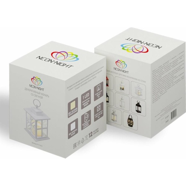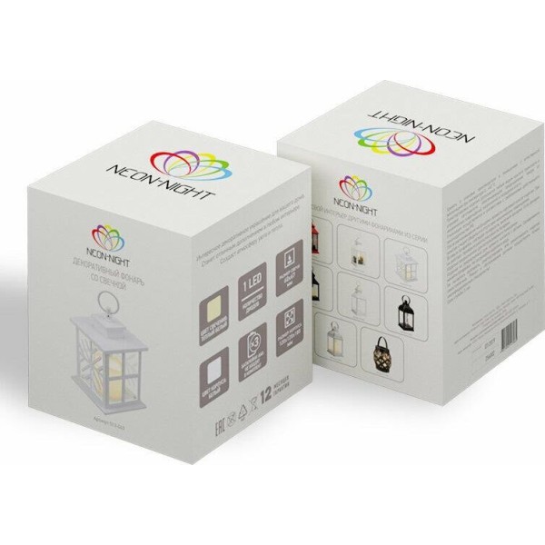 NEON-NIGHT (513-043) Декоративный фонарь со свечкой, белый со снежинкой, 12х12х18 см, цвет Теплый