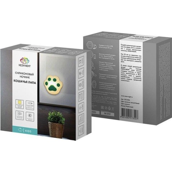 NEON-NIGHT (503-006) Силиконовый ночник "Кошачья лапа" бирюзовый