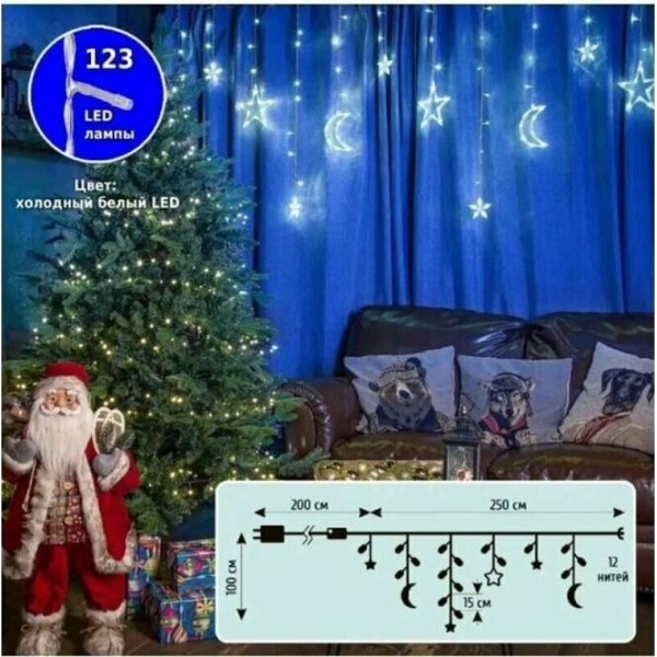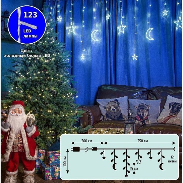 Электрическая гирлянда WINTER GLADE Электрическая гирлянда-занавес Winter Glade 123 лампы Холодный белый CC123