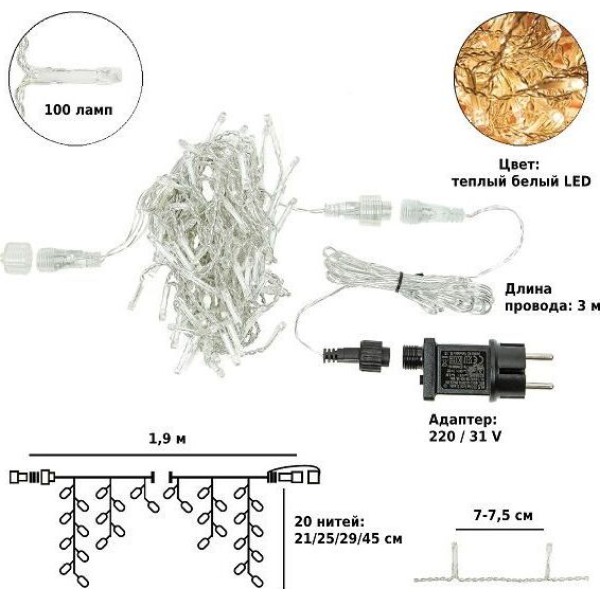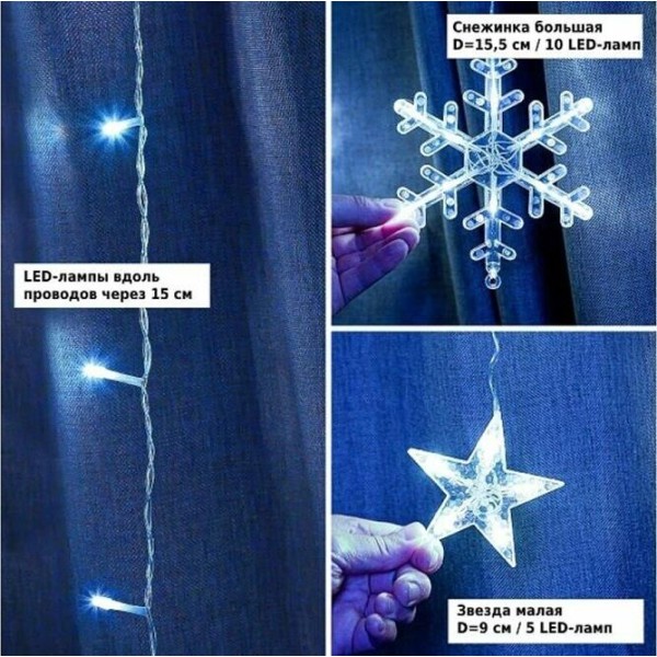 Электрическая гирлянда-занавес CС114 Winter Glade станет замечательным украшением дома в период новогодних и рождественских праздников. Мерцающий свет лампочек подарит сказочное праздничное настроение. • Длина гирлянды: 250 см • Длина нитей: 642-82 см • Длина провода: 2 м • Количество лампочек: 126 штук • Количество нитей: 12 штук • Цвет лaмпочек: холодный белый LED • Расстояние между лампочками: 15 см • Цвет проводa: прозрачный • Количество режимов: 8 штук • Питaние: 220V • Применение: внутри помещения • Размер индивидуальной коробки: 22х11х20 см • Размер транспортной коробки: 57х46х62 см • Количество штук в коробке: 30 штук • Вес нетто: 351 гр • Вес брутто: 421 гр • Производитель: Winter Glade • Страна: Китай