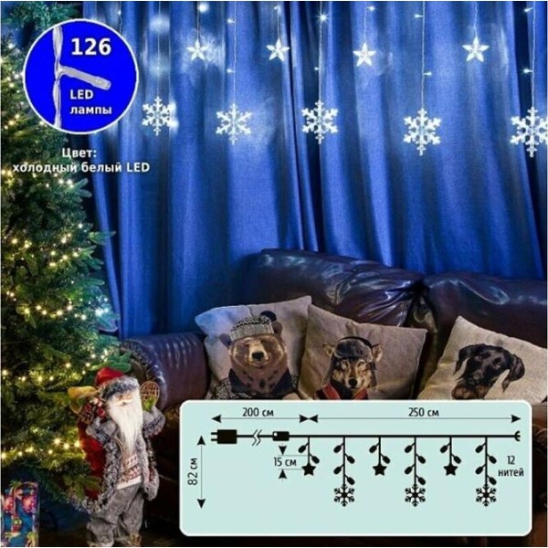 Электрическая гирлянда WINTER GLADE Электрическая гирлянда-занавес Winter Glade 126 ламп Холодный белый CC114