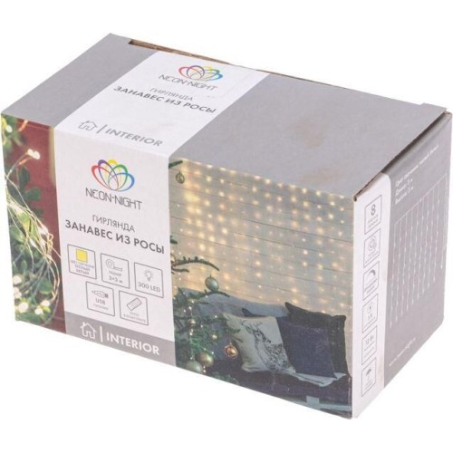 Гирлянда NEON-NIGHT (315-986) ДОЖДЬ ИЗ РОСЫ 3х3 м, 300 LED, теплый белый, IP20, USB + пульт управления