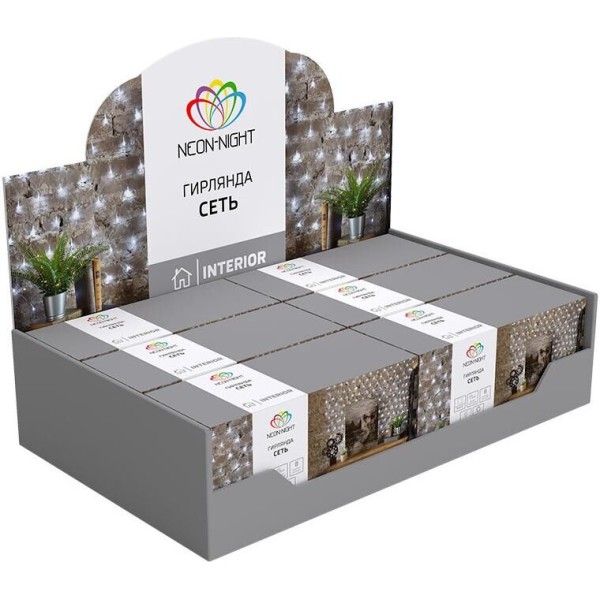 Гирлянда NEON-NIGHT (215-109) СЕТЬ 1,5х1,5 м, прозрачный ПВХ, 96 LED мультиколор, IP20, с контроллером, не соединяется