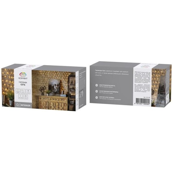 Гирлянда NEON-NIGHT (215-106) СЕТЬ 1,5х1,5 м, прозрачный ПВХ, 96 LED теплый белый, IP20, с контроллером, не соединяется