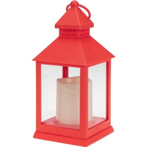 Декоративный фонарь со свечкой – оригинальное украшение, которое принесет уют и тепло в ваш дом. Изделие предназначено для использования в интерьере. Декоративный элемент подсвечивается одним диодом, имитирующим теплое пламя свечи. Корпус красного цвета имеет высоту 24 см. Для размещения в подвешенном виде предусмотрено кольцо. Фонарь питается от 3 батареек типа ААА, специальный отсек закрывается при помощи крышки.
