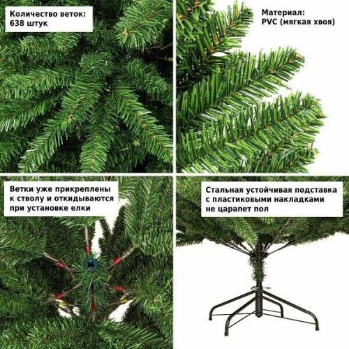 ROYAL CHRISTMAS Ель WASHINGTON PREMIUM PVC - 150CM 230150 Искусственная ель Washington Premium станет замечательным украшением дома в праздники. Пушистые ветки выполнены из мягкого материала PVC, благодаря чему дерево выглядит максимально похожим на настоящую елочку. Компания Royal Christmas производит елки в соответствии с международным стандартом противопожарной безопасности (NEN EN 71-2) для установки внутри помещения без риска возгорания. Высокое качество изделия способствует долгому сроку службы более 20 лет. Ель надежно закрепляется на стальной подставке, а процесс сборки не займет много времени. Благодаря просторной коробке елку можно аккуратно упаковать и удобно хранить в течение года. Искусственная ель Washington Premium это не только роскошный внешний вид, но и выгодное соотношение цены и качества. Высота: 150 см Диаметр: 104 см Вес нетто: 6,2 кг Материал: PVC (мягкая хвоя) Количество веток: 638 штук Цвет: зеленый Размер коробки: 109,22