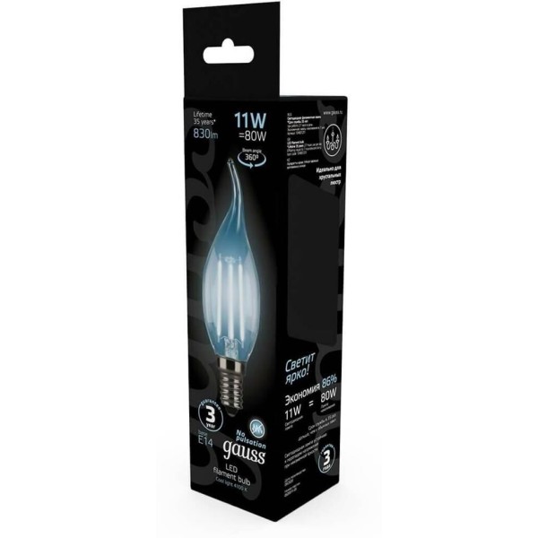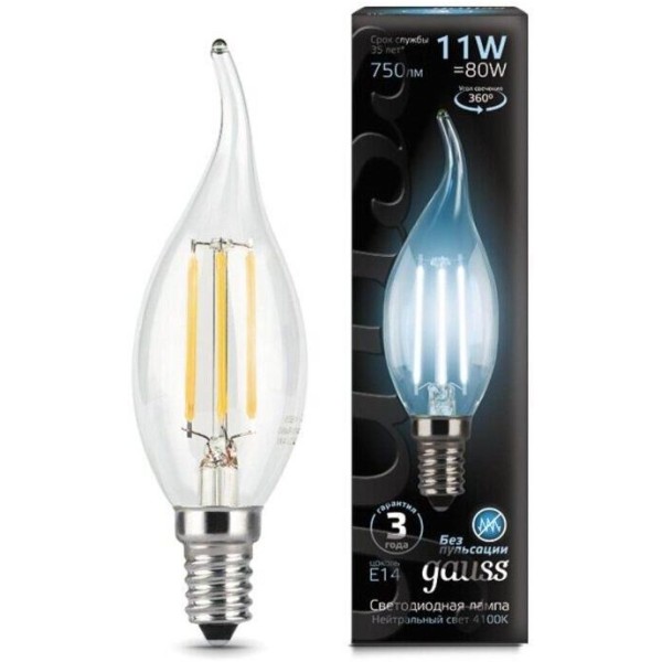 GAUSS Лампа филам. Filament 11Вт цок.:E14 свеча 220B 4100K св.свеч.бел.нейт. CF35 (упак.:1шт) (104801211)