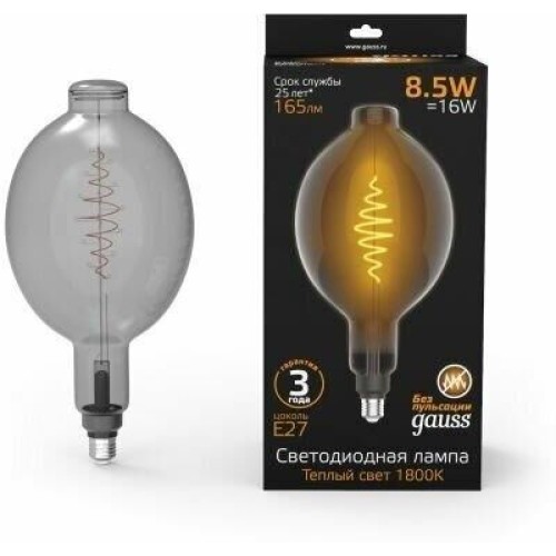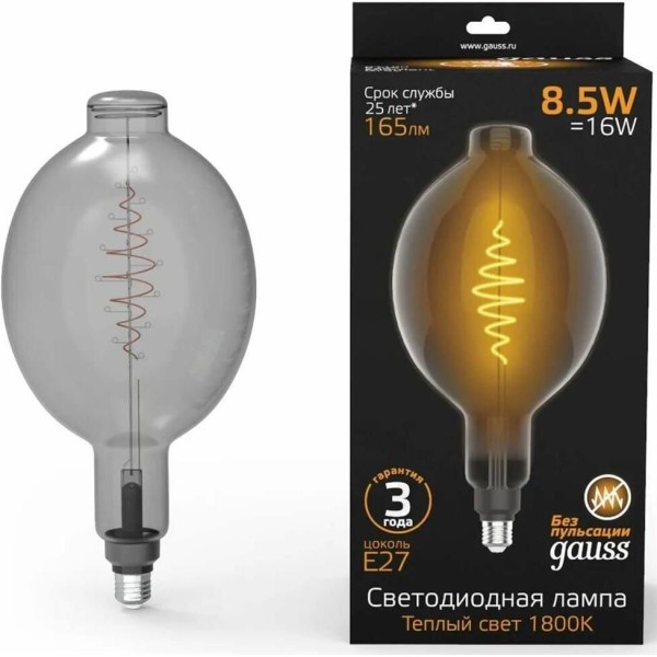 GAUSS Лампа филам. Filament Vintage 8.5Вт цок.:E27 шар 220B 1800K св.свеч.бел.теп. (упак.:1шт) (152802005)