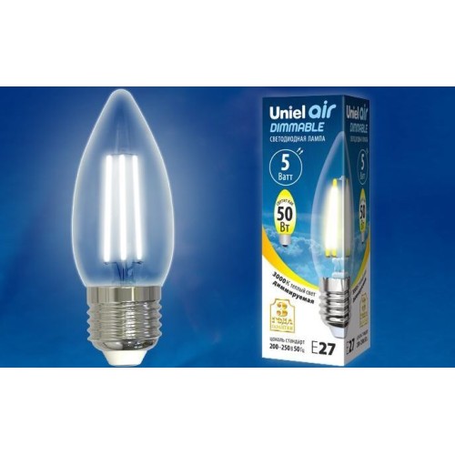 Лампочки светодиодные UNIEL (UL-00003643) LED-C35-5W/WW/E27/CL/DIM GLA01TR