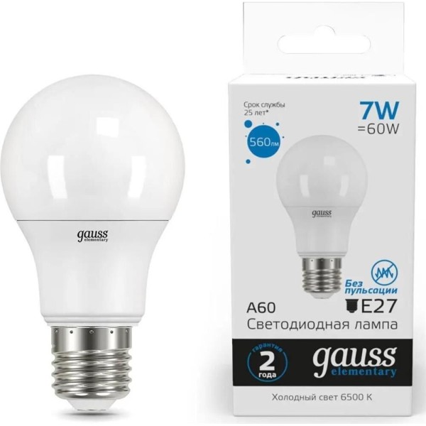 GAUSS Упаковка ламп LED E27, груша, 7Вт, 10 шт. [23237a]