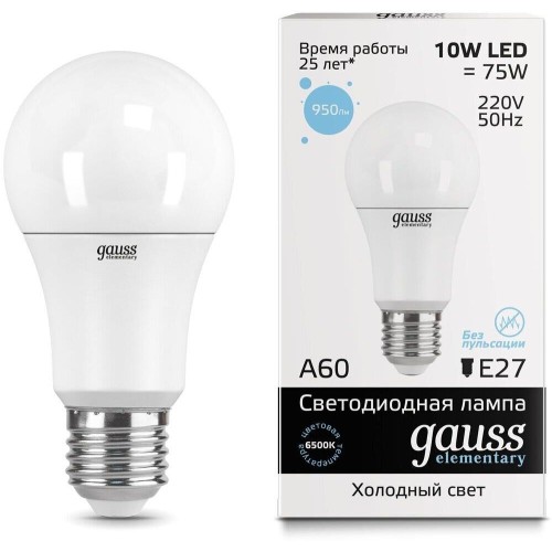 GAUSS Упаковка ламп LED E27, груша, 10Вт, 10 шт. [23230]