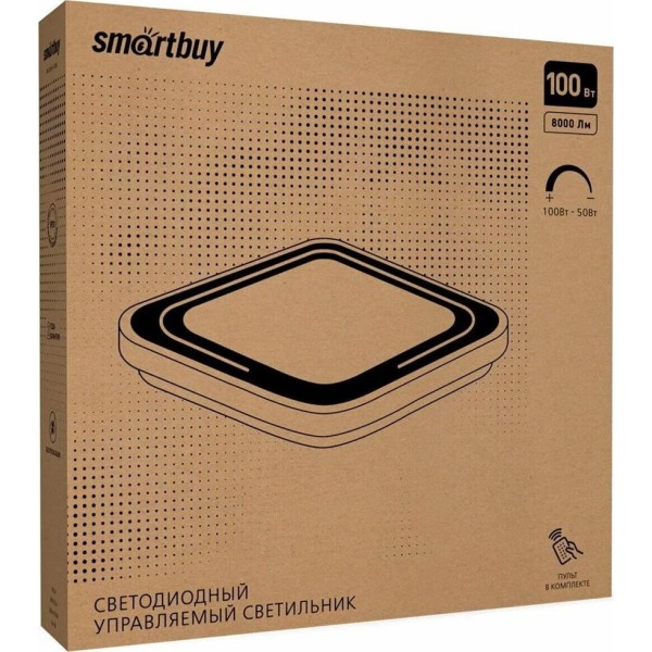 Характеристики SBL-Dim8-100W Напряжение, В 220-240 Мощность, Вт 100 Размер плафона, мм 500*500*65 Световая температура, К 3000-6500 Световой поток, Lm 8000 Пылевлагозащита, IP IP20 Материал Металл, акрил Цвет Белый+кофейный Пульт ДУ в комплекте Да
