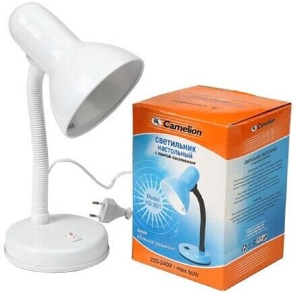 Настольный светильник Camelion KD-301 C01 белый, размер 200х140х130мм, источник света - ЛОН, тип лампы - 40/А/Е27, патрон - E27, мощность 40Вт, ~230 В, 50 Гц.