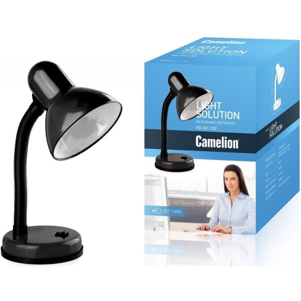 Настольный светильник Camelion KD-301 C02 черный, размер 200х140х130мм, источник света - ЛОН, тип лампы - 40/А/Е27, патрон - E27, мощность 40Вт, 230 В, 50 Гц.