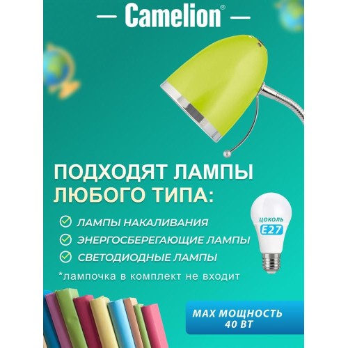 Светильник CAMELION KD-308 C16 зелёный (Светильник настольный,230V 40W E27)