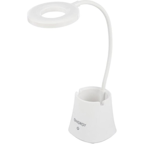 ENERGY EN-LED32 Настольная лампа LED Максимальная мощность: 5 Вт Кабель USB в комплекте Длина USB кабеля - 1,2 м Аккумулятор 1200 mA, 2 часа работы 3 режима освещения Сенсорная кнопка Стакан для ручек и карандашей Срок службы - 10 000 часов Высота лампы: 350 мм Напряжение: 5В Тип питания: USB, аккумулятораня батарея