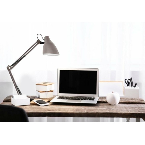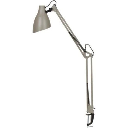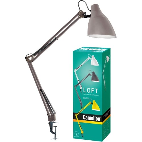 "Светильник KD-335 C26 тауп универсальная модель настольного светильника на металлической струбцине, предназначенная для освещения рабочего места , места чтения, учёбы. Может использоваться в офисных и домашних интерьерах, оформленных в разных стилях. Стойка, состоящая из двух 40-сантиметровых звеньев, и плафон неоычной формы изготовлены из металла. Матовое, не глянцевое окрашивание корпуса придаёт светильнику дополнительный шарм и современный стиль. Светильник можно использовать с любыми типами ламп, в том числе со светодиодными. Устойчивая металлическая струбцина надежно прикрепляет светильник к любой горизонтальной поверхности толщиной до 5 см. Плафон надёжно фиксируется в нужном положении винтовыми зажимами. Регулировка высоты и угла поворота плафона возможна в широком диапазоне. С выключателем на проводе. Стиль - LOFT. Будет гармонично смотреться в классическом интерьере и в современных интерьерах стилей лофт, техно и скандинавский."