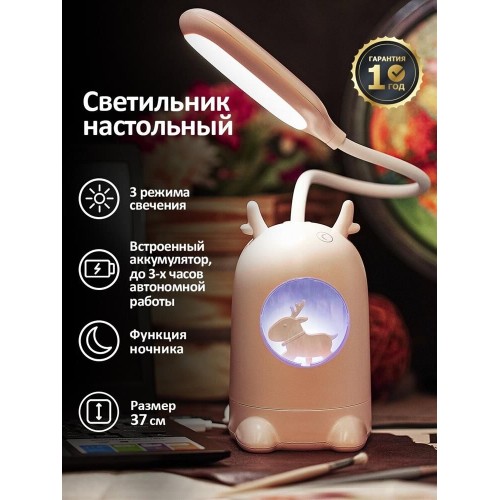 Светильник настольный REXANT (609-004) розовый Светильник настольный Click Lite с ночником на основании, LED, 6 Вт, 4000 К