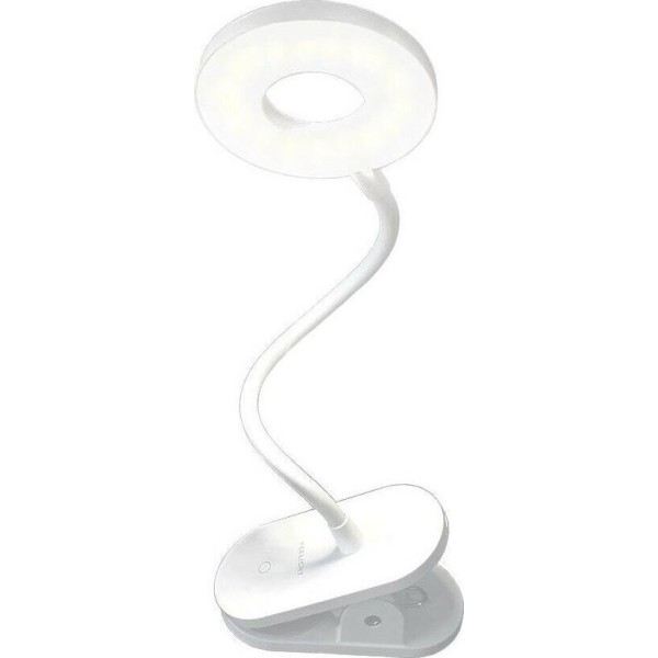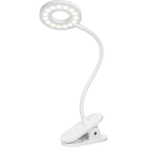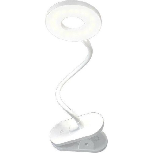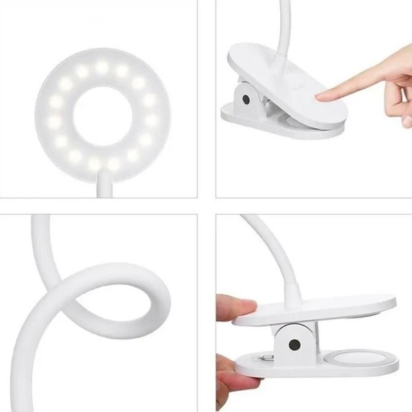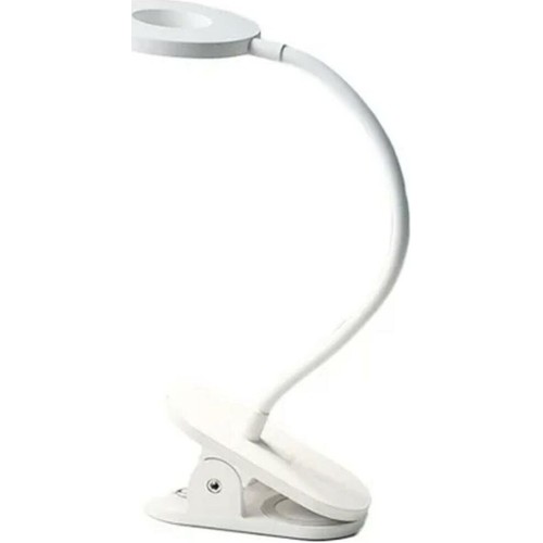 работает от аккумулятора непрерывно в течение 5-14 часов в зависимости от режима, емкость 1500 мАч; разъем для зарядки micro USB; лампа может стоять на столе или можно закрепить ее с помощью прищепки