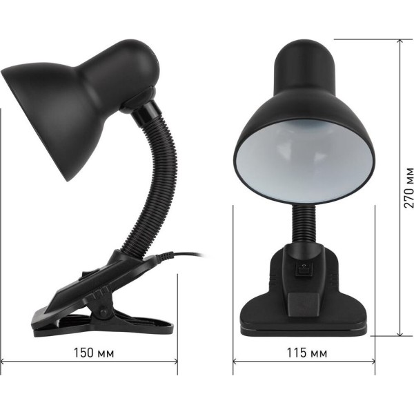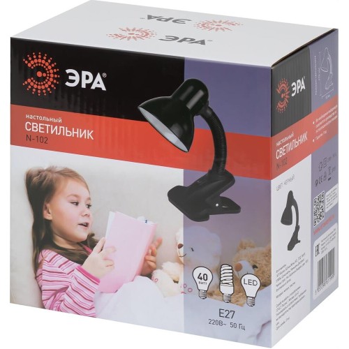 ЭРА C0041424 Настольный светильник N-102-E27-40W-BK черный матовый на прищепке