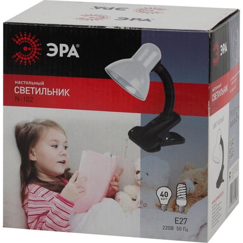 Настольный светильник под лампу накаливания или КЛЛ, цоколь E27,40W Тип крепления/установки: Прищепка Возможность использования с лампой накаливания: + Возможность использования с компактной люминесцентной лампой: + Максимальная мощность: 40W Гарантия: 1 год Интернет-сайт: www. eraworld. ru Материал: Металл / пластик Модель: N-102 Описание: Настольный светильник под лампу накаливания или КЛЛ, цоколь E27,40W Производитель: »АТЛ Бизнес (ШэньчЖэнь)