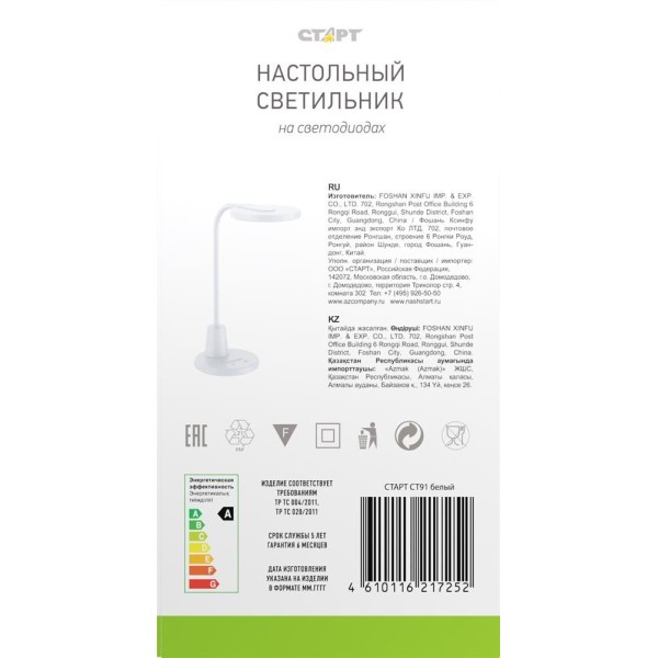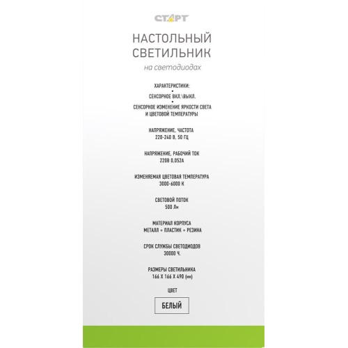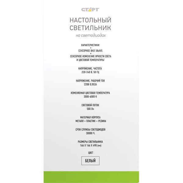 Настольный светильник СТАРТ (19040) CT91 белый