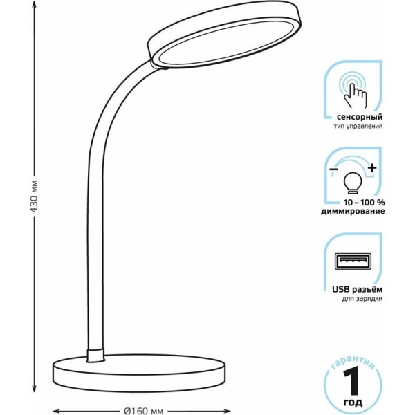 GAUSS Светильник GTL503 (GT5031) настольный на подставке белый 8Вт