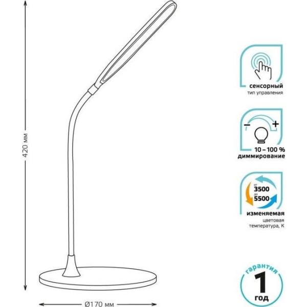 GAUSS Светильник GTL502 (GT5021) настольный на подставке белый 8Вт