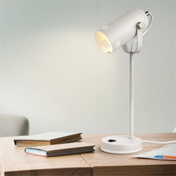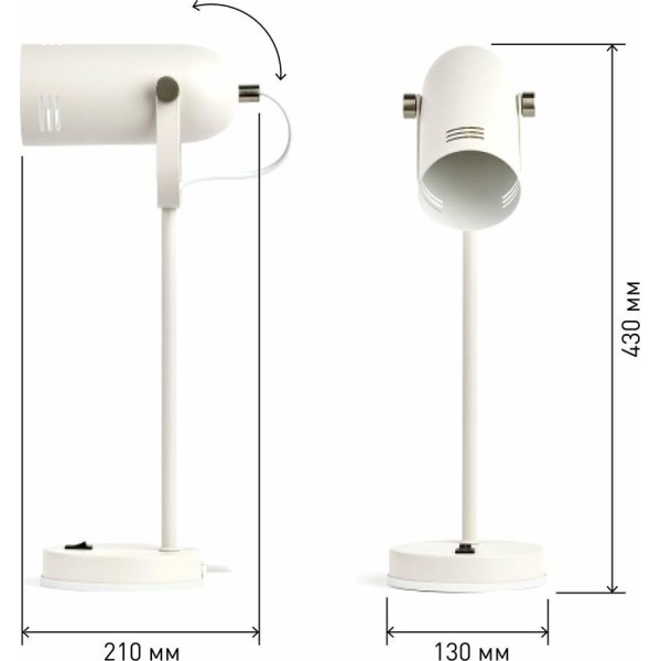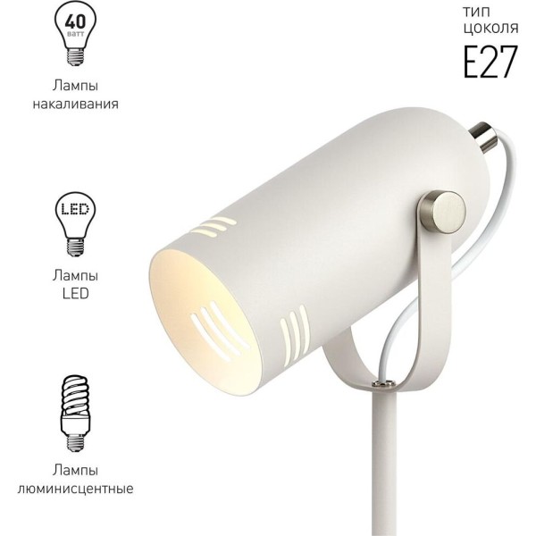 Функциональные преимущества: Светильник может использоваться с лампой накаливания, компактной люминесцентной лампой (КЛЛ) или светодиодной (LED) лампой. Металлический корпус с гальванизированными элементами. Устойчивая конструкция. Оптимальные размеры для идеального размещения на столе. Удобная регулировка направления света. Трендовый дизайн и цвета.