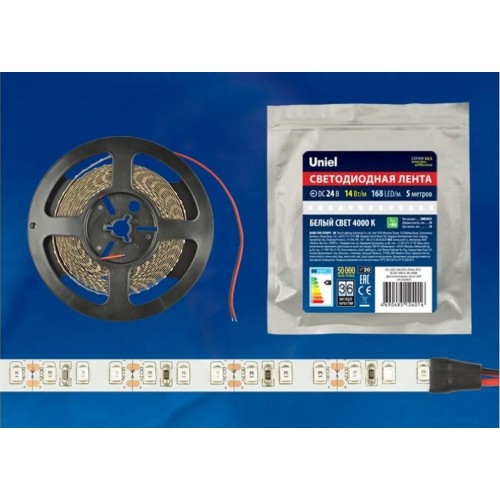 Светодиодная лента UNIEL ULS-2835-168LED/m-10mm-IP20-DC24V-14W/m-5M-4000K катушка в герметичной упаковке
