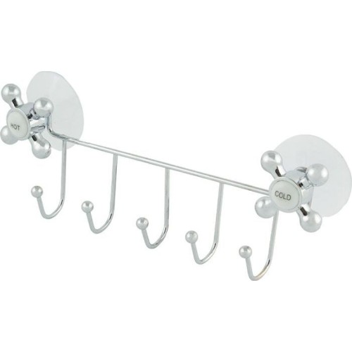 Размер: 24,5*9,3*4,5 см 5 крючков Материал: хромированный металл, ПВХ, пластмасса Материал не подвержен коррозии и устойчив к влаге. Вешалка легко устанавливается без усилий и специального инструмента. Простой дизайн впишется в любой интерьер и органично дополнит его, независимо от стиля ванной комнаты