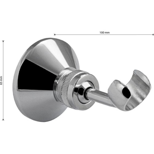 Кронштейн для душевой лейки металлический, хромированный, снабжен встроенным соединительным шарниром, выполняющим поворотную функцию. Крепление для душа позволяет фиксировать шланг в вертикальном положении возле стены или в другом удобном месте. Хромированное покрытие обеспечивает высокую устойчивость к коррозии и эстетичный внешний вид. С крепления легко удалить загрязнения, капли воды и известковый налет. Габаритные размеры: длина 100 мм, диаметр посадочного седла 65 мм. Вес - 0,200 кг, объём - 0,00049 м3.