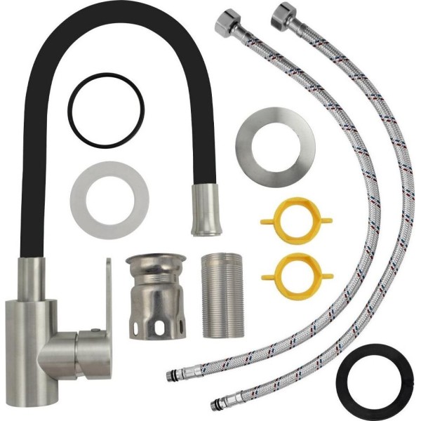 Смеситель для кухни MAGNUS 9216 Смеситель кухонный, гибкий излив Черный, из нерж. стали марка 304