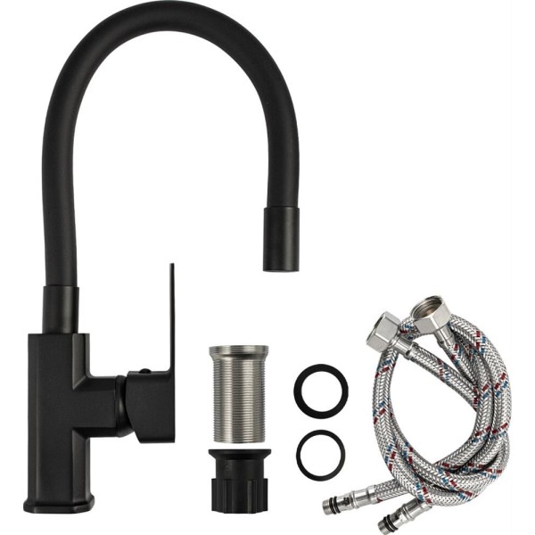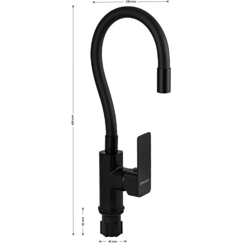 Смеситель для кухни FABIA 9656 Смеситель для кухни, шаровый, с гибким черным изливом , корпус квадратный, цвет ЧЕРНЫЙ.