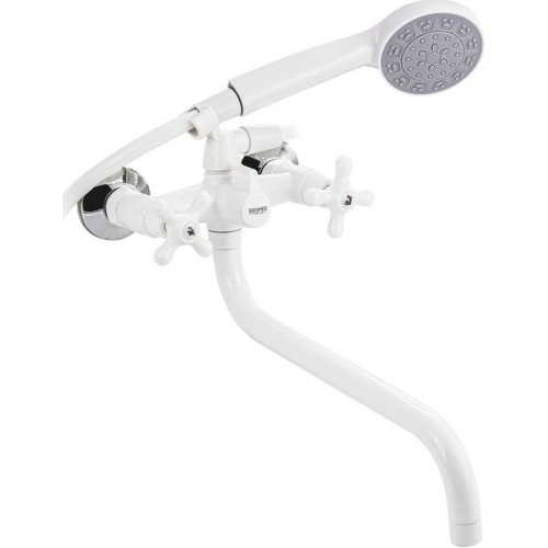 Смеситель для ванны BRIMIX 4407 Смеситель для ванны с длинным изливом, металлокерамика, с шаровым переключением, из высокопрочного АБС пластика, ручка КРЕСТ, цвет БЕЛЫЙ.